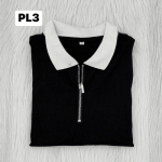 Timeless Elegance: Black & Cream Zipper Polo (PL3)