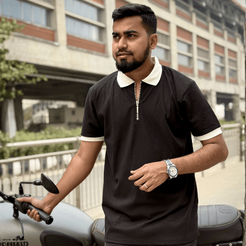 ফ্যাশন আর আরামের নিখুঁত মেলবন্ধন নিয়ে Bismah-এর এই ব্ল্যাক ও ক্রিম জিপার পোলো শার্টটি আপনার ক্যাজুয়াল কালেকশনে নিয়ে আসবে নতুনত্ব। কালো রঙের আভিজাত্য আর ক্রিম কালার কলারের রিফ্রেশিং লুক আপনাকে ভিড়ের মাঝেও করে তুলবে স্টাইলিশ।