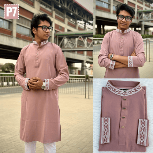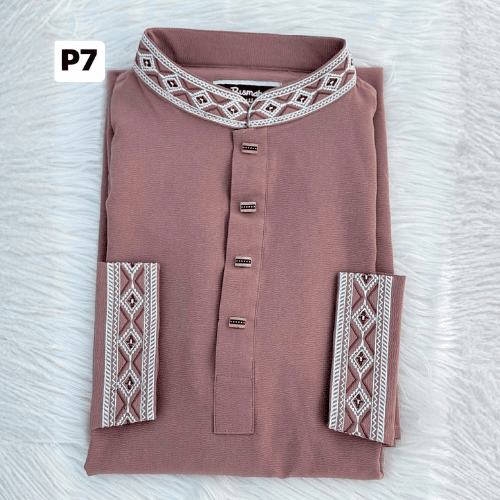 Dusty Pink Zafran Fabric Panjabi with Embroidery (P7)