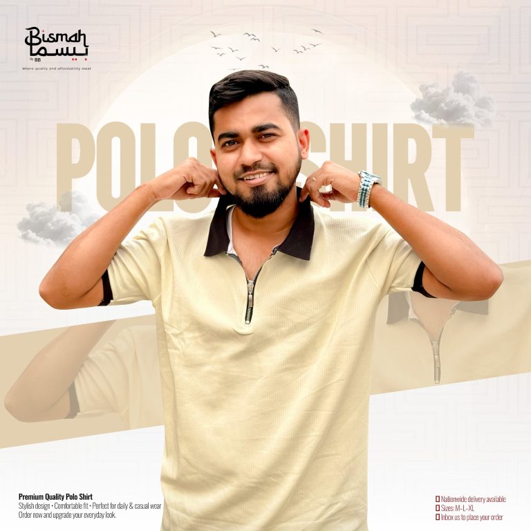 রাজকীয় লুক আর আরামের এক অনন্য সংমিশ্রণ! Bismah নিয়ে এলো প্রিমিয়াম কোয়ালিটির চেলি ফেব্রিক পোলো শার্ট। মিন্ট গ্রিন এবং ক্রিম কন্ট্রাস্টের এই জিপার পোলো আপনাকে দিবে এক রিফ্রেশিং ও স্টাইলিশ ভাইব। এটি অত্যন্ত সফট এবং ৪-ওয়ে স্ট্রেচেবল, যা এই গরমেও আপনাকে দিবে সর্বোচ্চ আরাম।