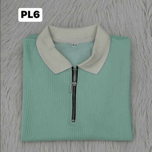 Refresh Your Style: Mint Green & Cream Zipper Polo (PL6)