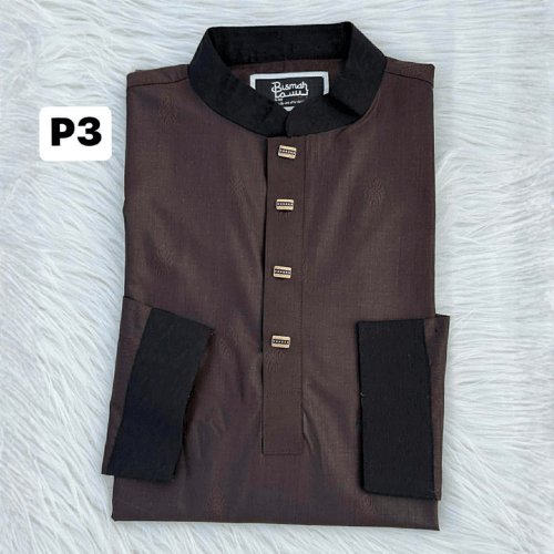 Redefine Luxury with the Bismah Premium Chocolate Brown Panjabi (P3)