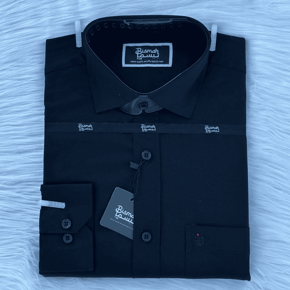 Designed with Bismah’s philosophy of “explore quality and effortless city wear,” this shirt boasts a contemporary slim fit that provides a sharp, tailored silhouette. The rich black color and sophisticated solid make it an incredibly versatile staple for any discerning gentleman.