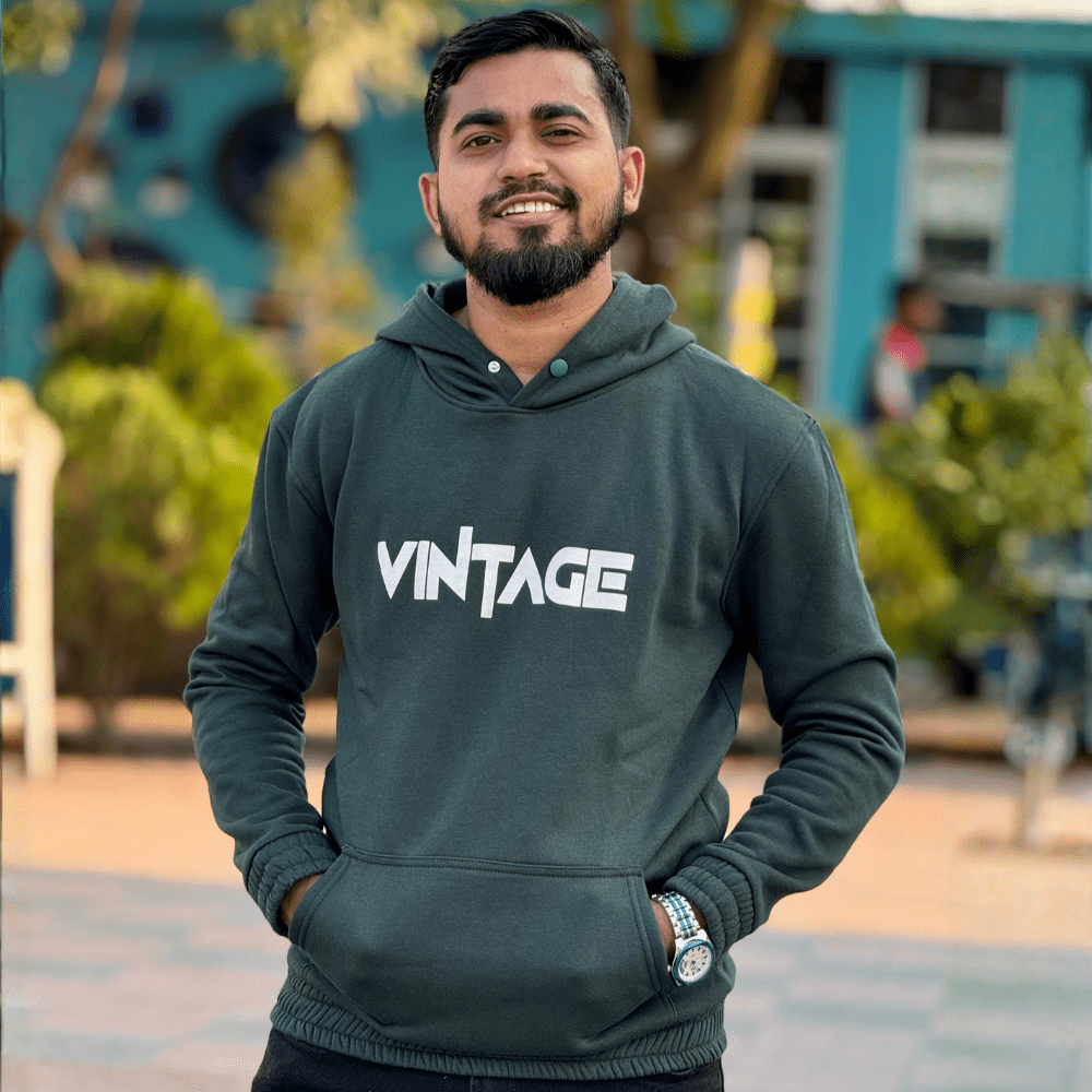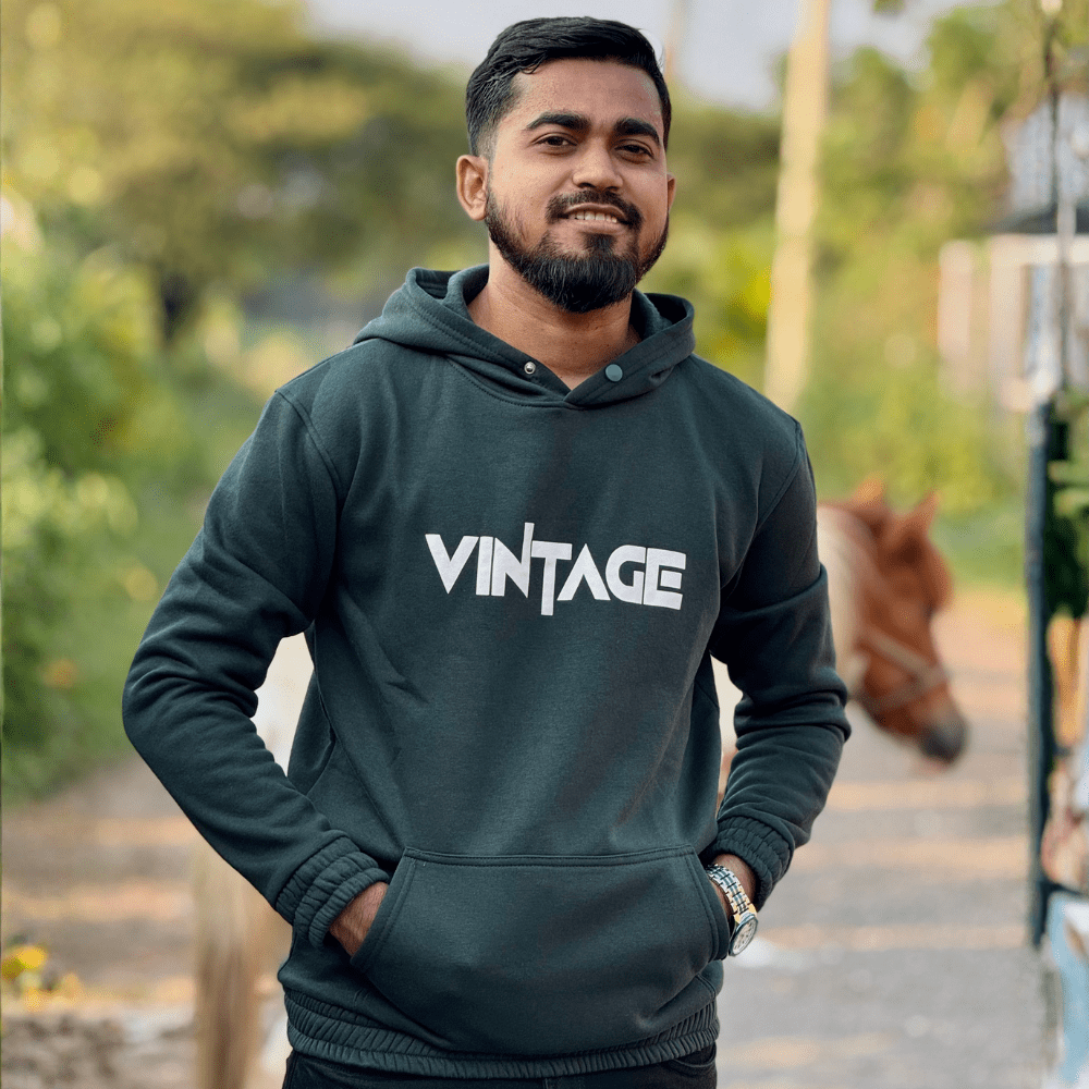 Get that authentic, throwback feel with the Bismah “VINTAGE” Hoodie. This thick, warm pullover features a bold white ‘VINTAGE’ graphic on a unique Dark Teal/Forest Green color fabric, offering both superior comfort and a cool, classic aesthetic for your everyday wear.
